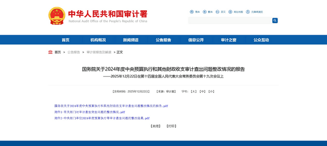 2025年12月22日,受國務(wù)院委托,審計署審計長侯凱向十四屆全國人大常委會第十九次會議作了《國務(wù)院關(guān)于2024年度中央預(yù)算執(zhí)行和其他財政收支審計查出問題整改情況的報告》(以下簡稱《審計整改報告》)。為進一步了解2024年度審計整改有關(guān)情況,記者采訪了審計署政策研究室主要負責(zé)同志。