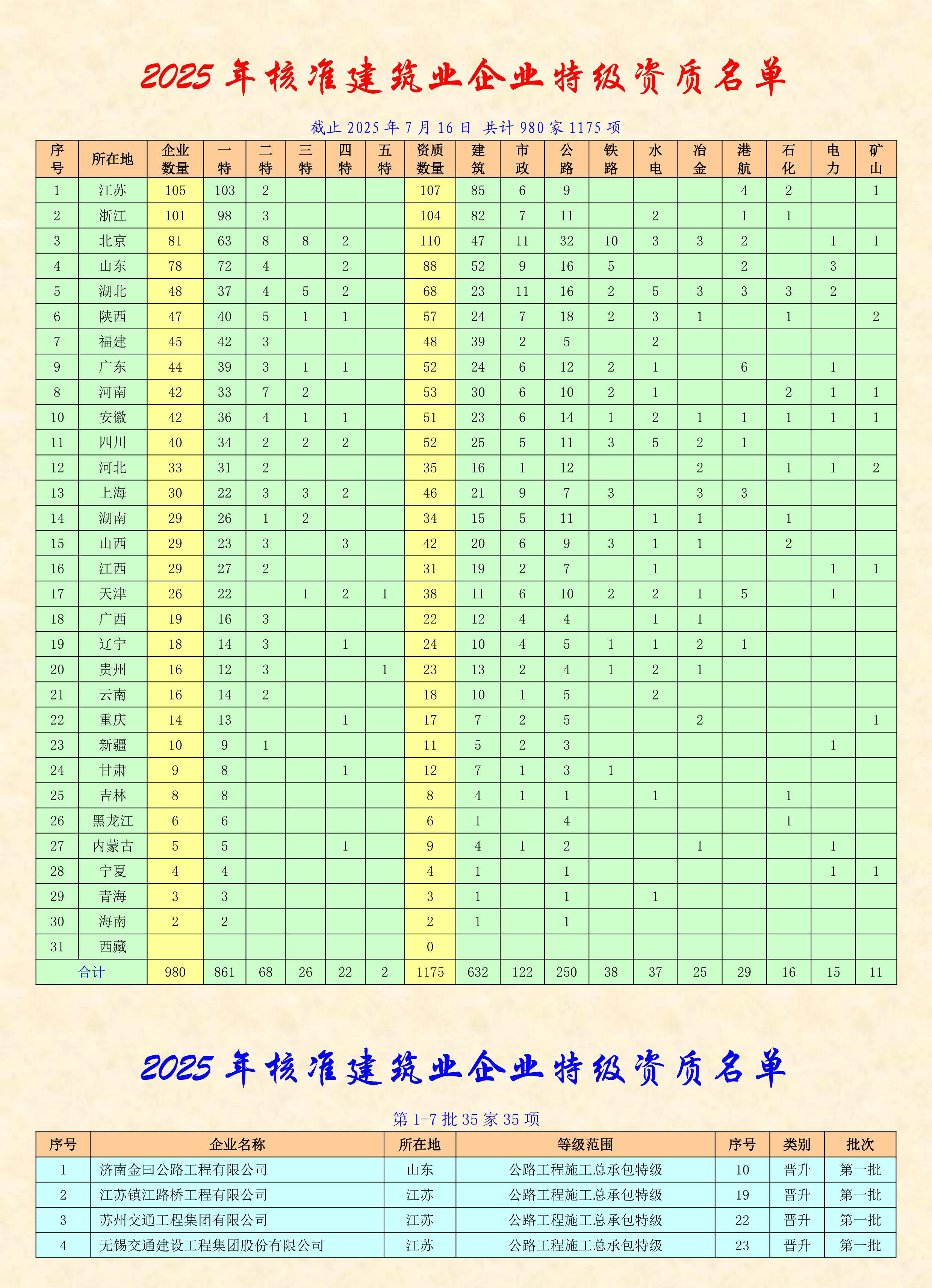 根據(jù)《中華人民共和國建筑法》及有關建設工程企業(yè)資質(zhì)管理規(guī)定,現(xiàn)將我部核準的工程勘察資質(zhì)、工程設計資質(zhì)、建筑業(yè)企業(yè)資質(zhì)、工程監(jiān)理企業(yè)資質(zhì)的單位名單(2025年度第七批)予以公布。未予核準的單位可登錄住房城鄉(xiāng)建設部政務服務門戶,點擊“申請事項辦理進度查詢(受理發(fā)證信息查詢)”欄目查詢原因。