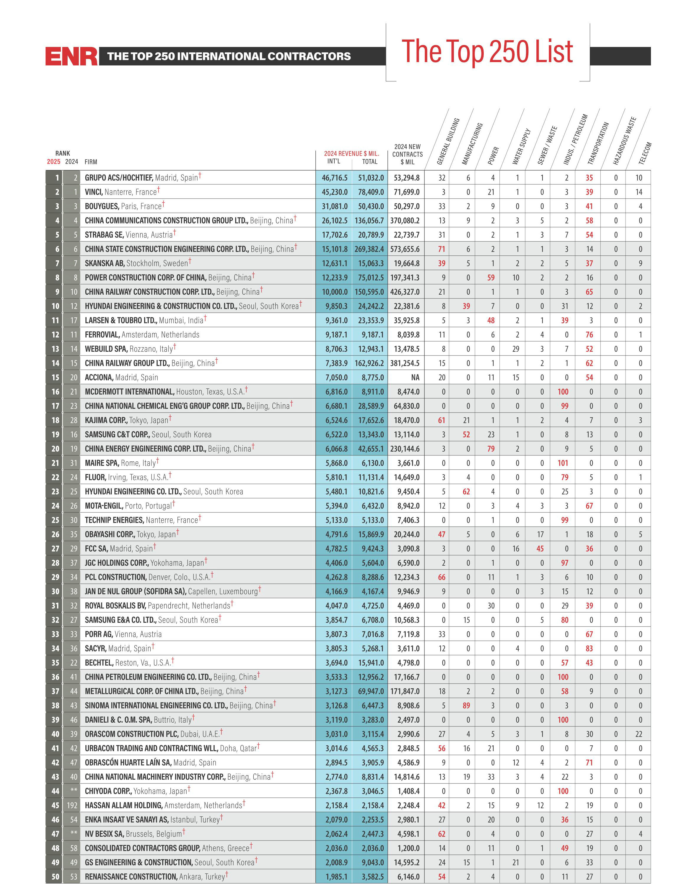 2025年度《美國工程新聞紀(jì)錄(ENR)》全球最大250家國際承包商完整榜單