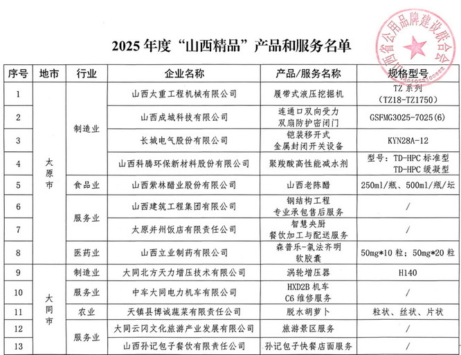 【行業(yè)動態(tài)】關于2025年度“山西精品” 產品和服務名單的通告