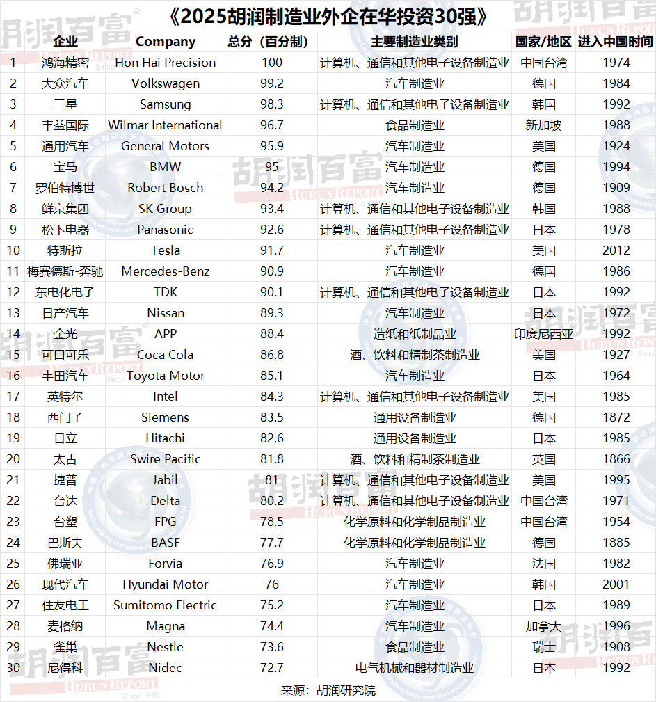(2025年6月16日,廊坊)提供有質(zhì)量的榜單與調(diào)研的胡潤研究院聯(lián)合河北省商務(wù)廳,今日于廊坊發(fā)布《2025胡潤制造業(yè)外企在華投資30強》(Hurun Largest Foreign & HK/Macau/Taiwan Manufacturing Companies in China 2025)。該榜單列出了制造業(yè)領(lǐng)域最具代表性的30家外資企業(yè),依據(jù)這些企業(yè)最新財年在中國內(nèi)地(大陸)的銷售額和員工規(guī)模兩大指標進行綜合評估。這是胡潤研究院首次發(fā)布該榜單。
