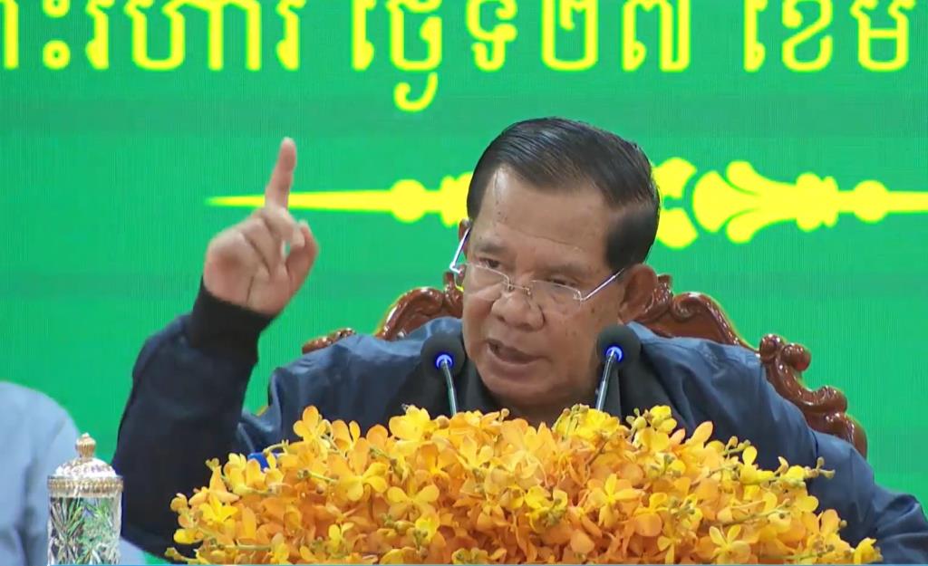 6月27日,洪森在柬泰邊境召開新聞發(fā)布會(huì) 視頻截圖