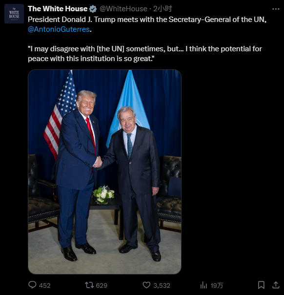 在貶低聯(lián)合國后,特朗普與古特雷斯會面 推文截圖