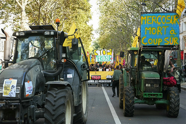 協(xié)議簽署儀式將在當(dāng)?shù)貢r間12月20日舉行,但在最后關(guān)頭,這項協(xié)議依然面臨歐盟內(nèi)部的阻力。報道稱,法國農(nóng)民10月以來多次舉行抗議示威,反對歐盟-南方共同市場自貿(mào)協(xié)定。法國農(nóng)民擔(dān)心,拉美農(nóng)產(chǎn)品通過自貿(mào)協(xié)定進(jìn)入歐洲市場,將沖擊本地農(nóng)業(yè)。