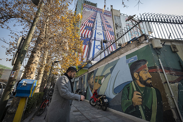 2026年1月6日,德黑蘭,一塊反美反以色列的廣告牌。廣告牌上描繪了美以士兵棺材的象征性圖像,旁邊是伊朗議會議長阿里·拉里賈尼的聲明,寫著“小心你們的士兵”。 視覺中國