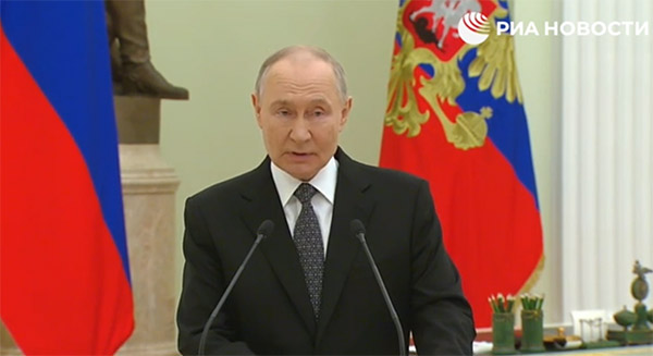 2月23日是俄羅斯祖國(guó)保衛(wèi)者日,普京也在頒獎(jiǎng)儀式上感謝了俄羅斯武裝力量。他說:“值此節(jié)日之際,我們向所有在‘特別軍事行動(dòng)’區(qū)域履行職責(zé)的軍人致敬。他們以冒著生命危險(xiǎn)的精神、勇氣與毅力,以對(duì)俄羅斯、對(duì)我們?nèi)嗣竦臒釔郏Pl(wèi)國(guó)家邊界,維護(hù)戰(zhàn)略平衡?!?