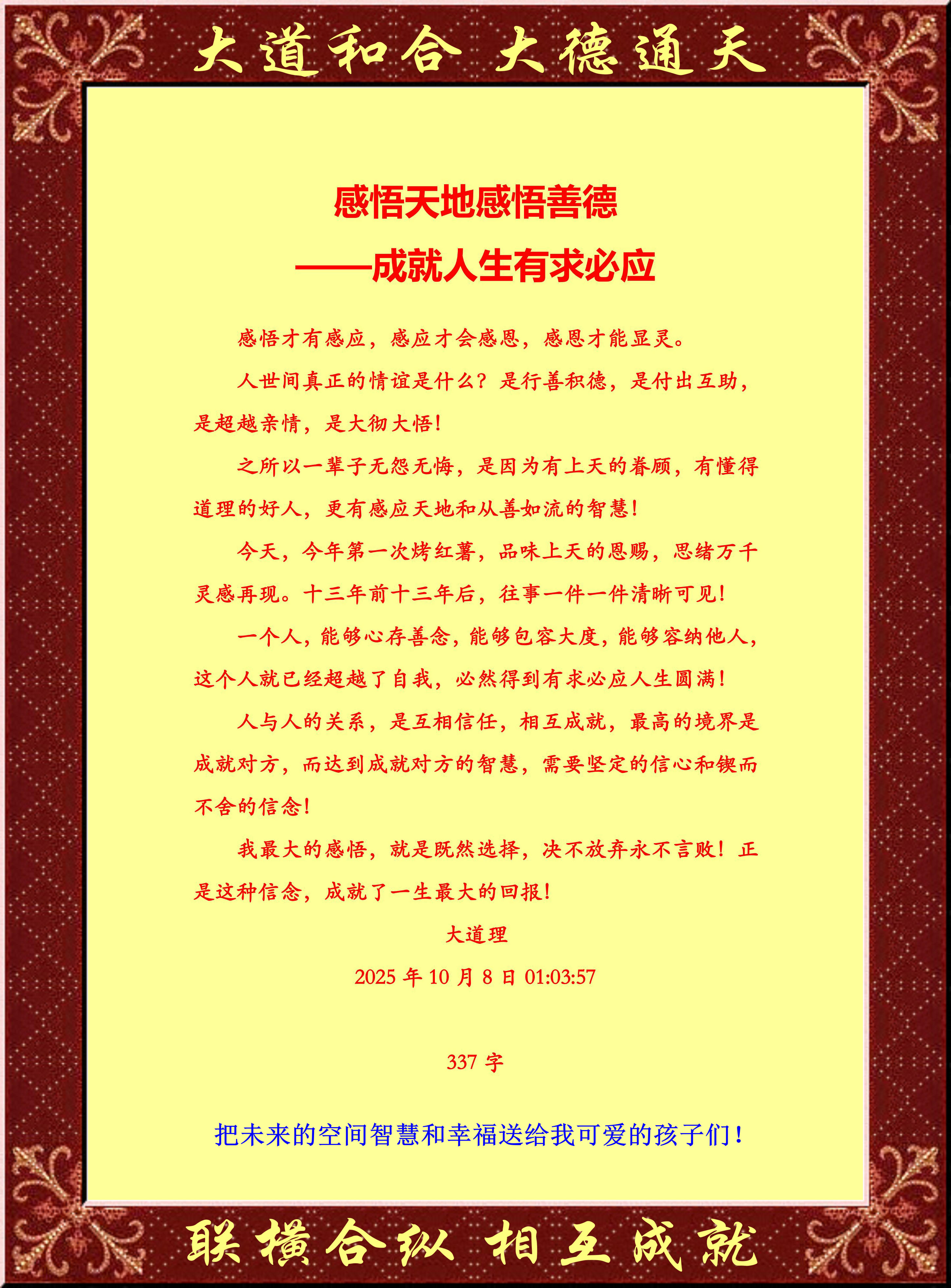 感悟才有感應(yīng),感應(yīng)才會感恩,感恩才能顯靈。