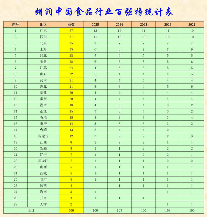 2021—2025胡潤(rùn)中國(guó)食品行業(yè)百?gòu)?qiáng)總榜單