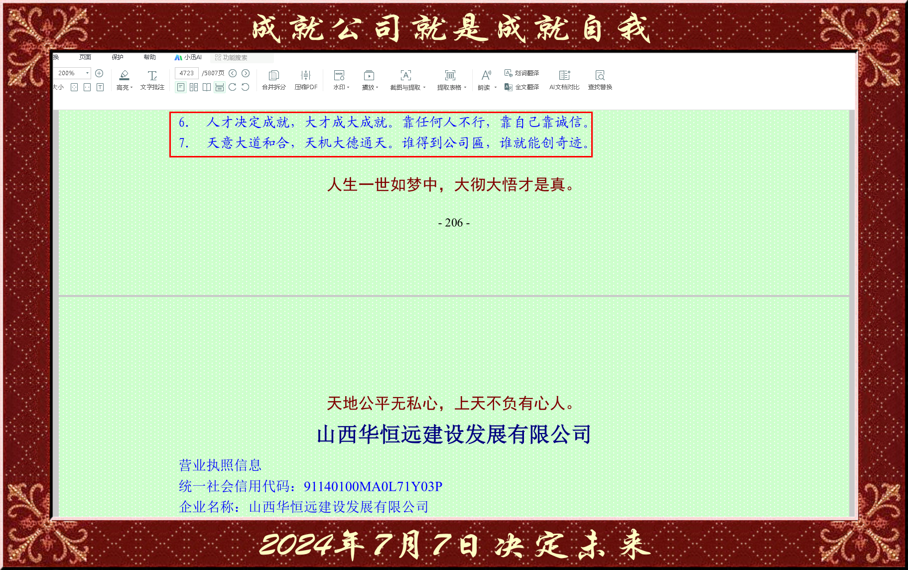 華恒遠(yuǎn)的全體員工,應(yīng)該把成就十三篇結(jié)合自己的工作學(xué)習(xí)領(lǐng)會,在實(shí)踐中運(yùn)用,在創(chuàng)新中理解,精髓不在文中而在文外,達(dá)到百悟其意,那就成就了自己也就成就了未來的公司!