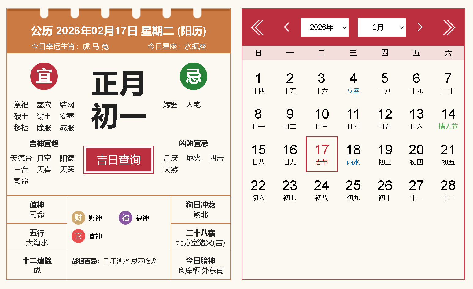二〇二六年二月十七日 農(nóng)歷丙午年正月初一 星期二 晴