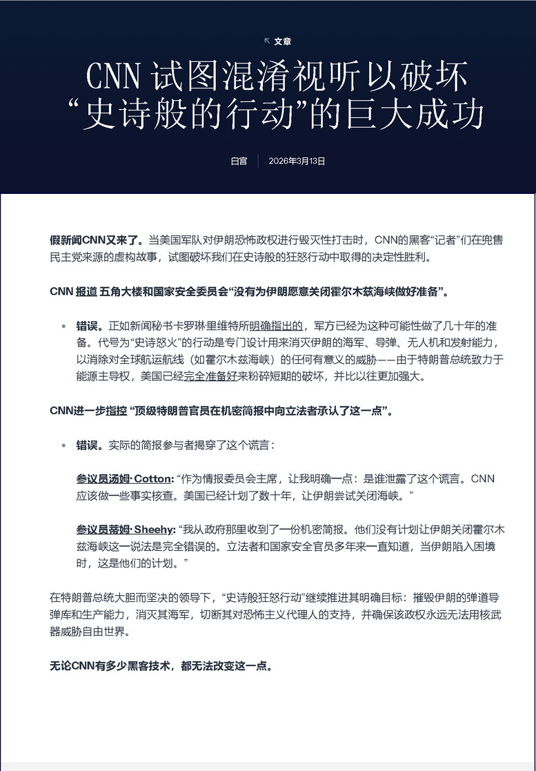 美國的戰(zhàn)士們正在以不懈的力量摧毀伊朗恐怖政權(quán) 2026年3月4日